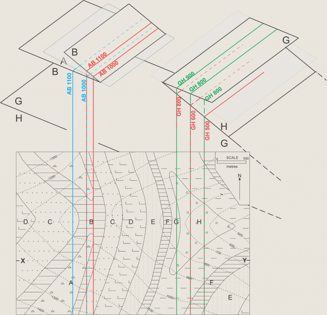 Duas LS se sobrepõem, como GH800/GH900, isso indica que a zona de charneira está entre essas cotas.