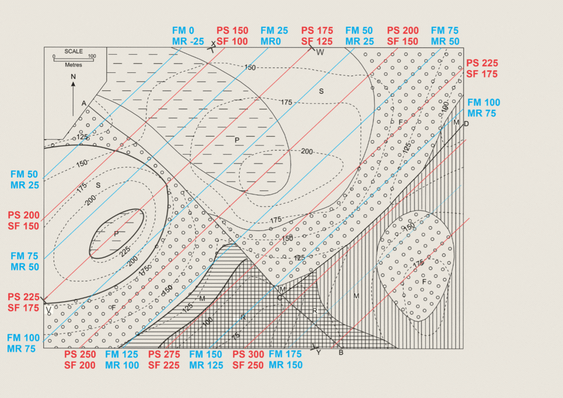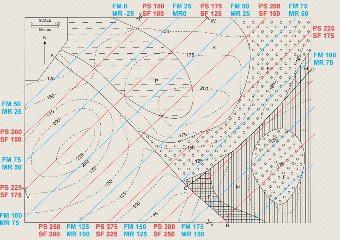 Traçando essas LS é fácil completar o mapa a SW da falha A-B, como mostra a Figura 2 e a Animação 1.