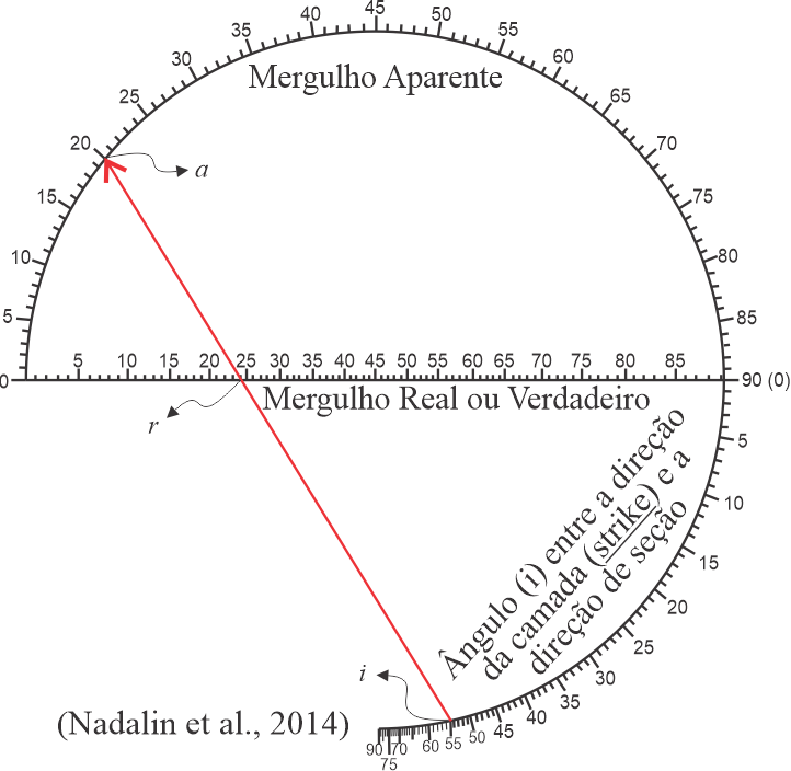 Figura 10: Exemplo de gráfico usado para calculo de mergulho aparente. modificado de Nadalin et al., 2014